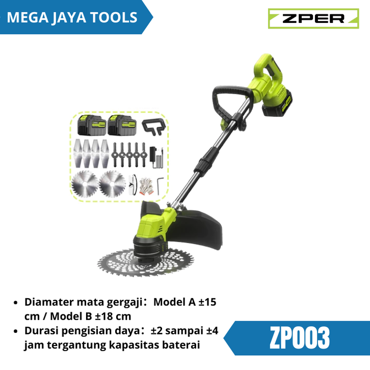 MESIN POTONG RUMPUT LISTRIK ZPER ZP003 BATERAI LI-ION ALAT PEMANGKAS PORTABLE ELECTRIC