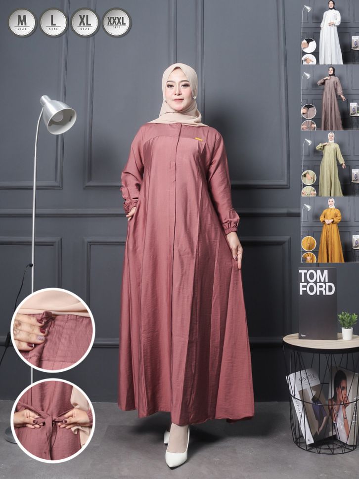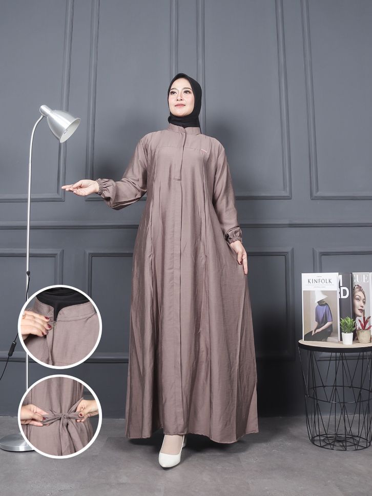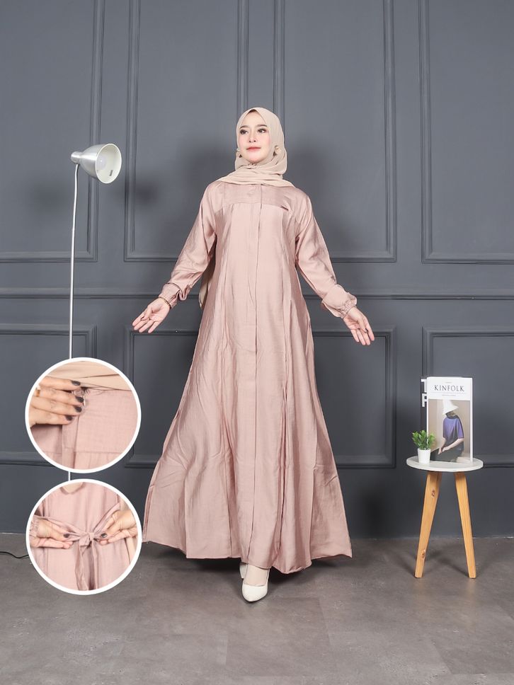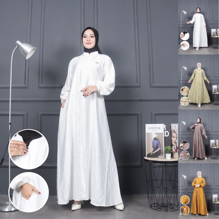 Gamis Sabrina Linen Polos Modern Elegan Nyaman Dipakai