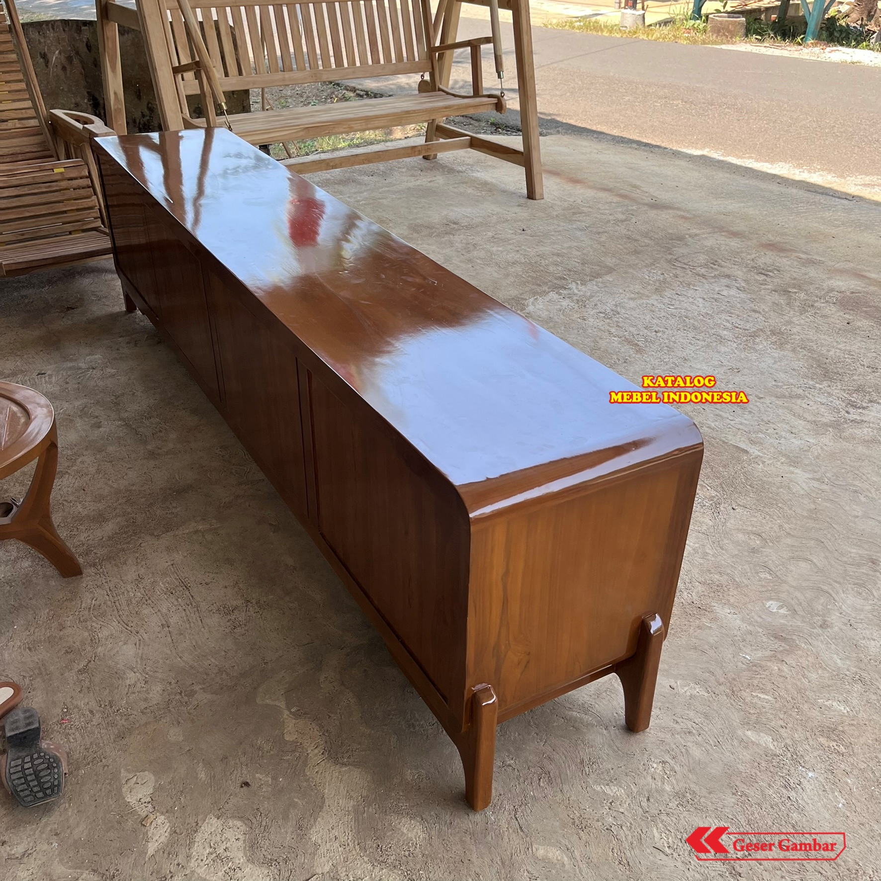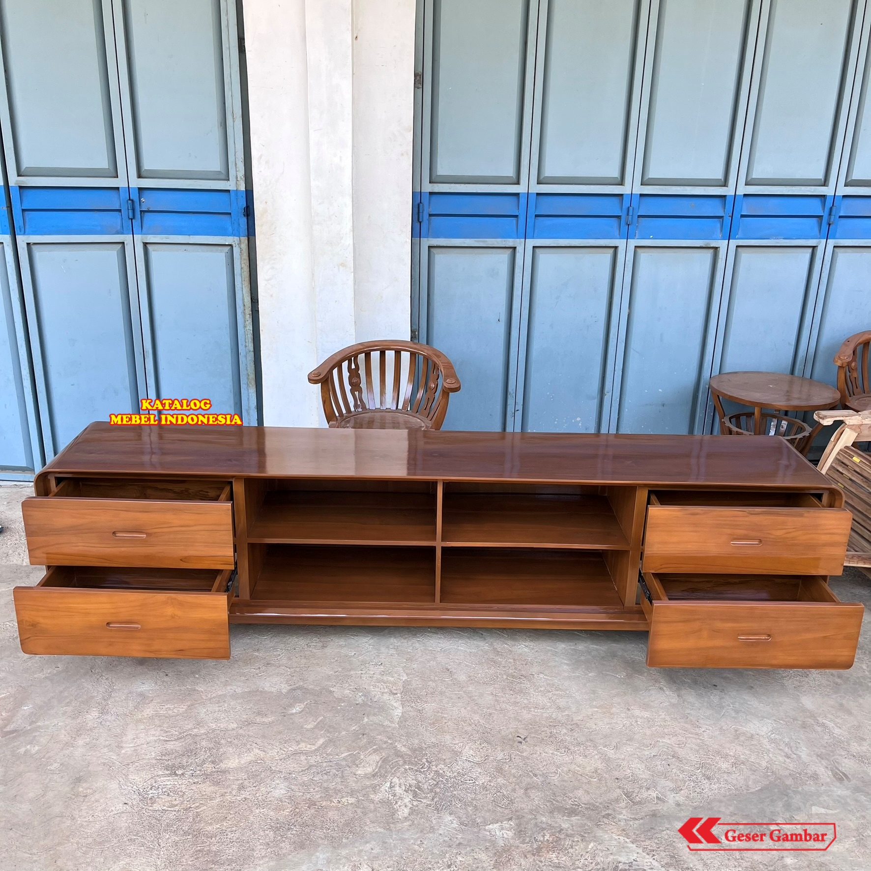 Meja TV Minimalis Kayu Jati 4 Laci + 4 Ruang Kosong - Buffet TV Modern 250cm Furniture Ruang Tamu