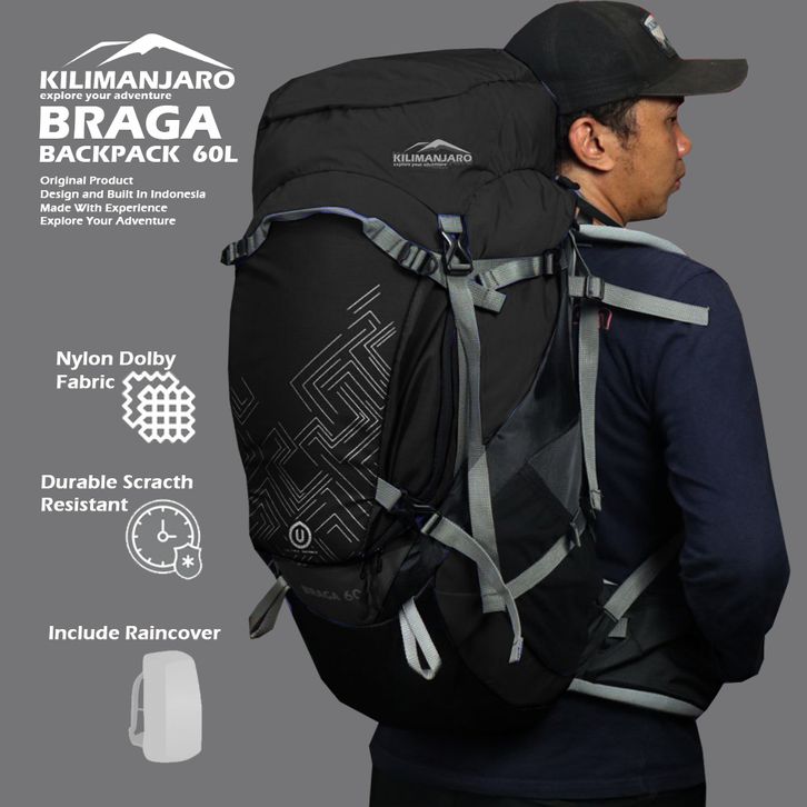 Tas Gunung Tas Camping Tas Gunung Carrier Braga 60L Dapat Raincover Original Kilimanjaro