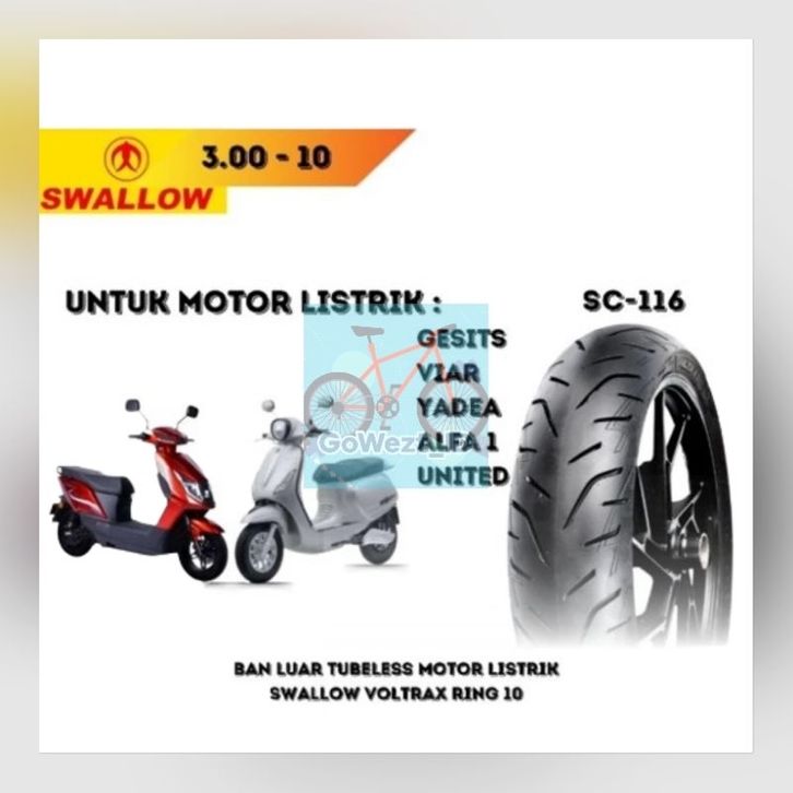 Promo Ban Luar Sepeda Motor Listrik Tubless Swallow 300 - 10 Ukuran 3.00 10 SC-116 Voltrax Tubeless