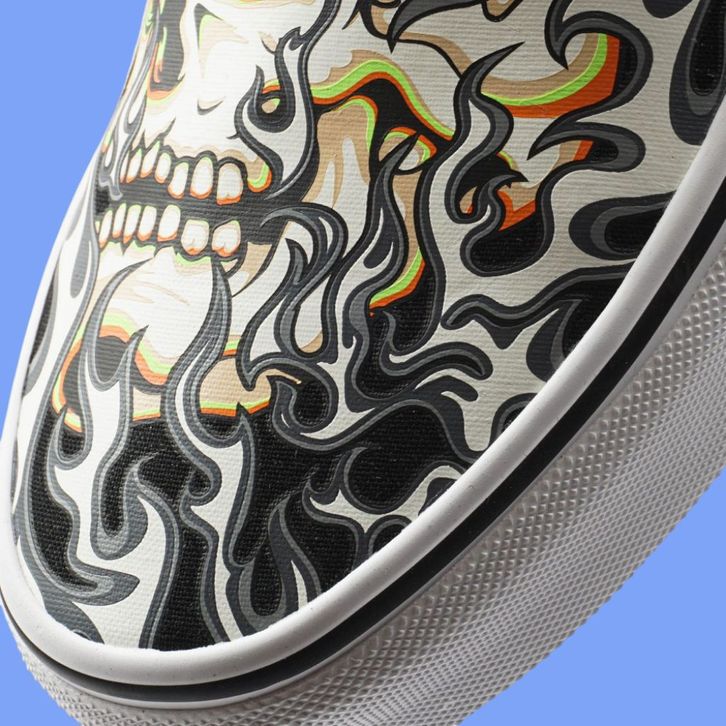 VANS SLIP ON CLASSIC FLAME SKULL ORIGINAL 100 BNIB