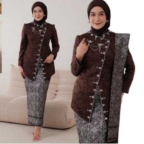 BARU Special Burgundy Mahogany - Set Kebaya Modern Janggan Series Wisuda Lamaran Full Payet Tunangan Kondangan