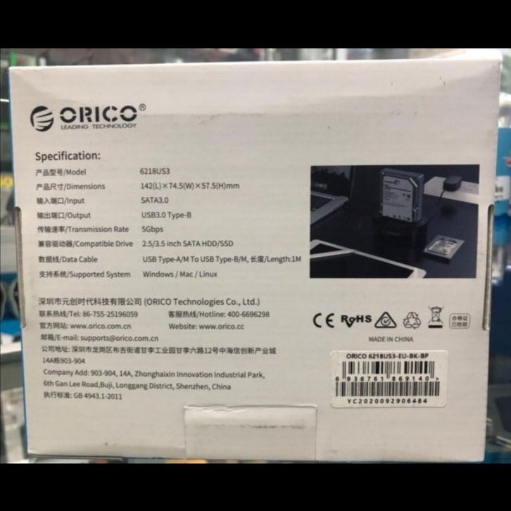 Orico 6218US3 Hard Drive Dock 2.5/3.5 Inch docking harddisk