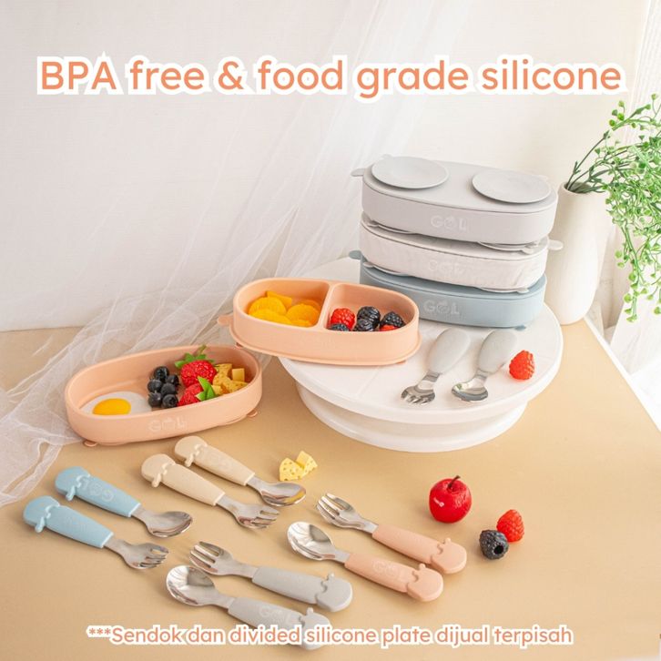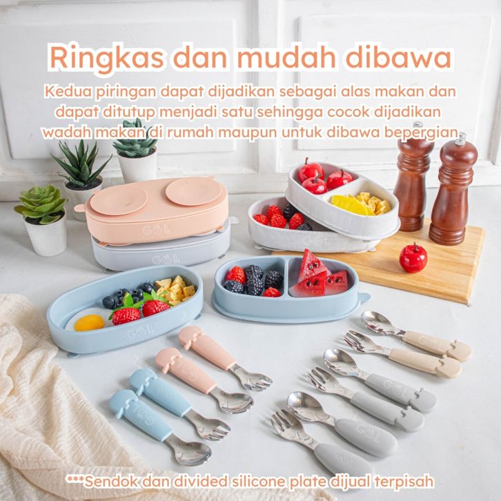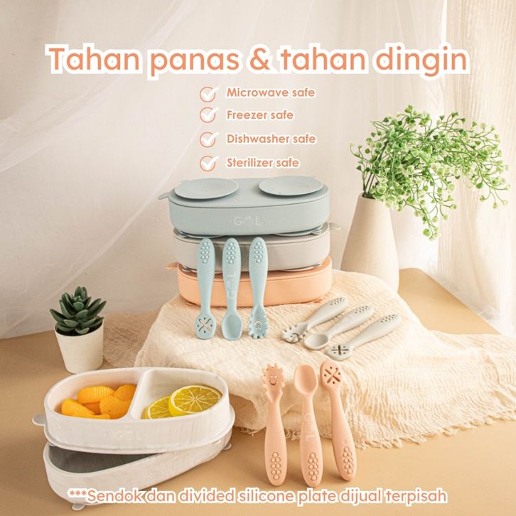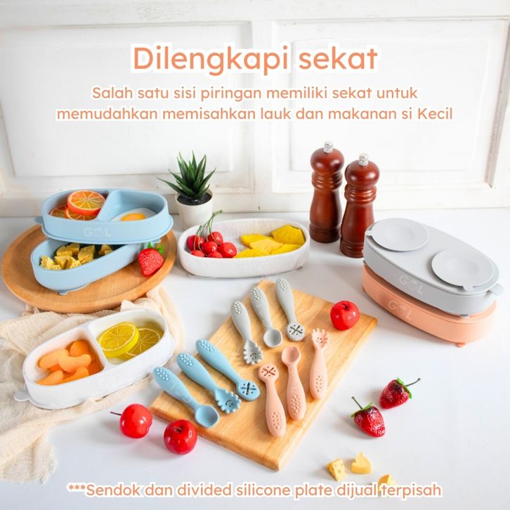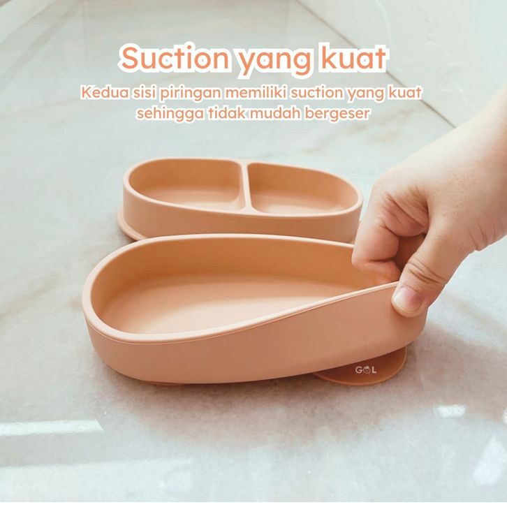GOL Baby Piring Silikon Bayi Anti Slip Suction Piring Mangkok Tempat Makan Sekat Anak Bayi Anti Tumpah Premium Baby Di