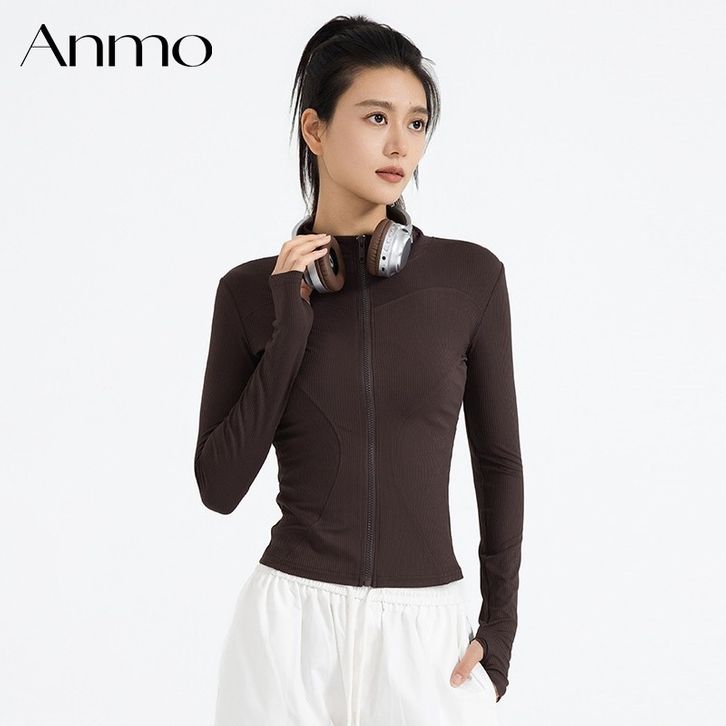 GRATIS ONGKIR ANMO-Jaket olahraga wanita kerah bergaris untuk gym, olahraga, tidak panas dan breathable