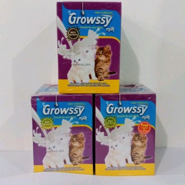 susu growssy 1dus (isi10pcs +free1) susu kucing baby-cat milk terlaris, termurah, dan berkualitas.
