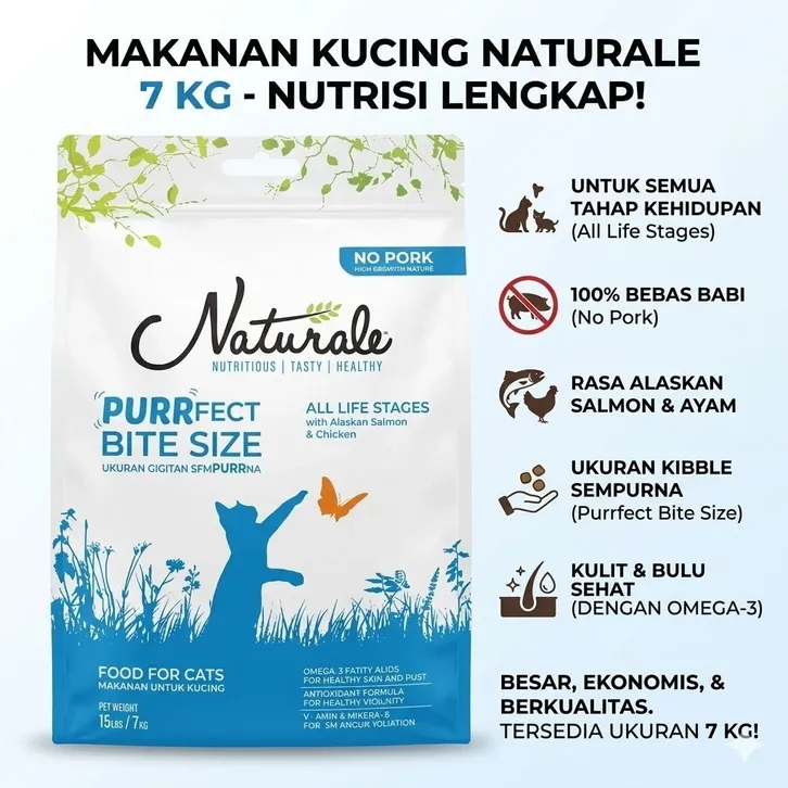 Naturale Premium Cat Food Purrfect Bite Size All Stage NO PORK 7 KG terlaris,