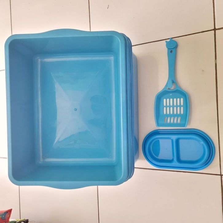 Tempat Pup Kucing BIG 1set Litter Box BESAR FREE + TEMPAT MAKAN KUCING DOUBLE + Serokan Kucing