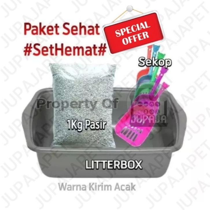 Tempat pup kucing 1set bak+serokan+pasir 1kg terlaris toilet litterbox kucing tempat EE Bak Pasir