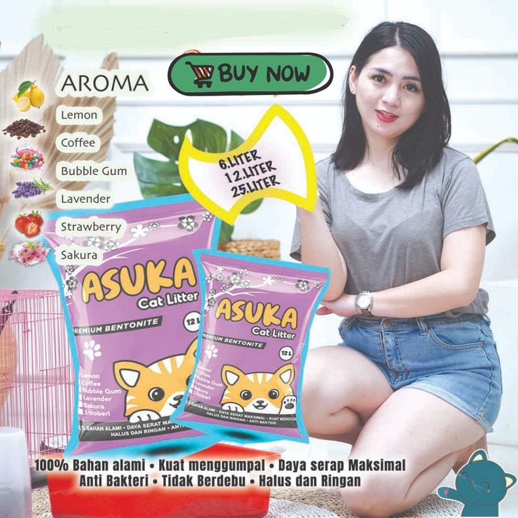 6 liter-PASIR KUCING GUMPAL WANGI-ASUKA-PASIR ANTI DEBU-ANTI BAKTERI JAPAN QUALITY terlaris,