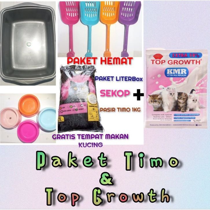PAKET BAK PASIR + Sekop +1KG Pasir Gumpal Wangi BENTONITE TIMO,TOFU(500GR), GRATIS TEMPAT MAKAN KUCI