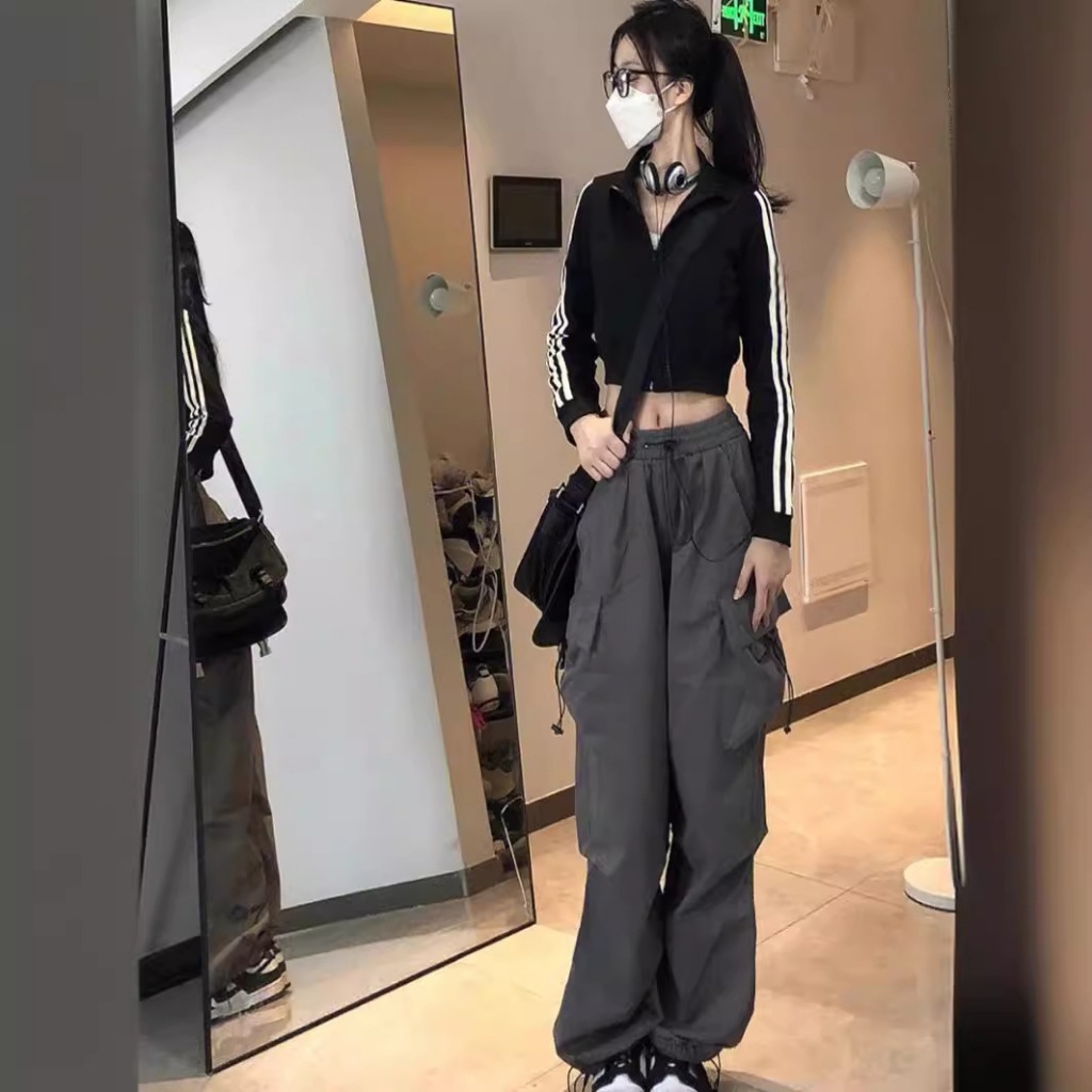 2025 New celana cargo kasual harajuku Teachwear Stretwear pria wanita