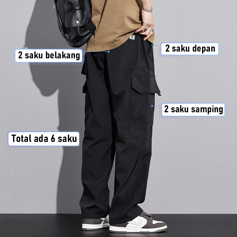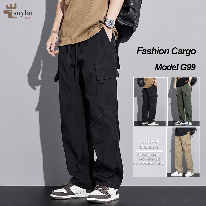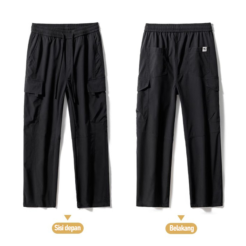 Suyboy Celana cargo panjang pria kulot sutra es dewasa baggy pants Korean style causal Celana kargo