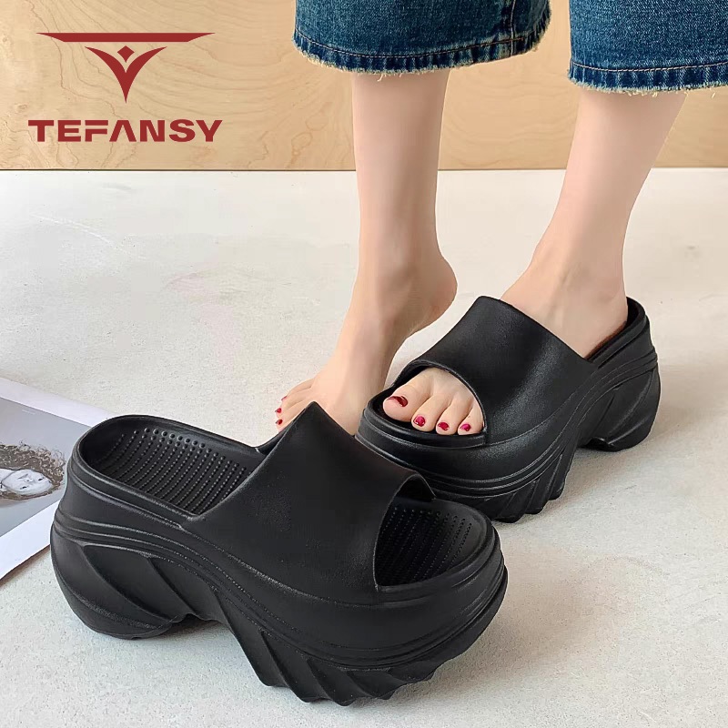 Tefansy Sandal Wanita Fuji Wedges Sendal Selop Cewek Jelly Korea Tinggi Platform Wanita Slides