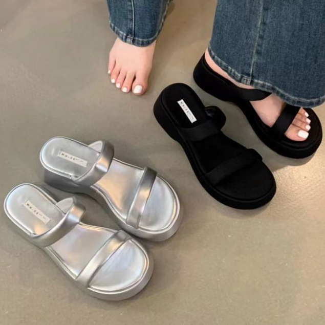99kshoes Women Sandals Double Strap Open Toe Wedges 5765 (Size: 36 - 40)
