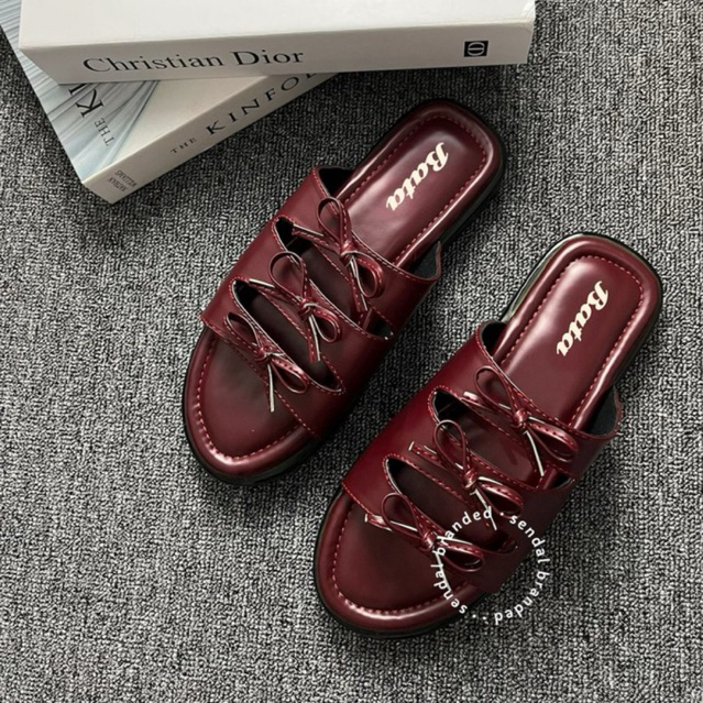 Promo BATA Sandal wanita wedges 5cm Sandal slop pita Sandal wedges cewek slide anti licin sendal tinggi