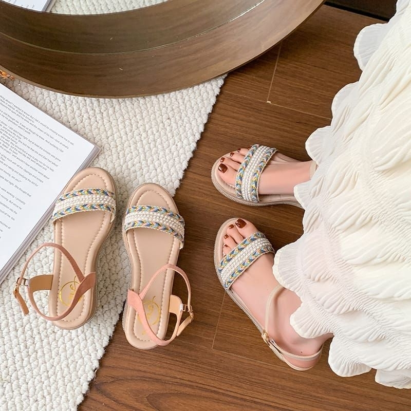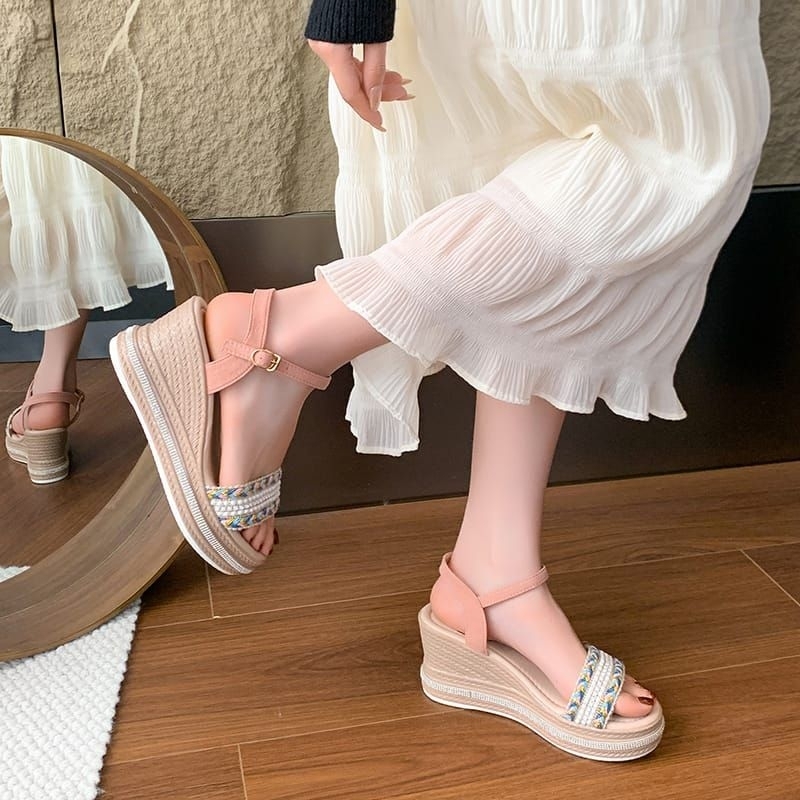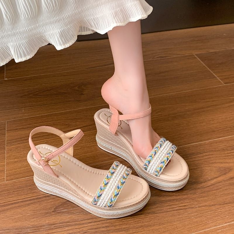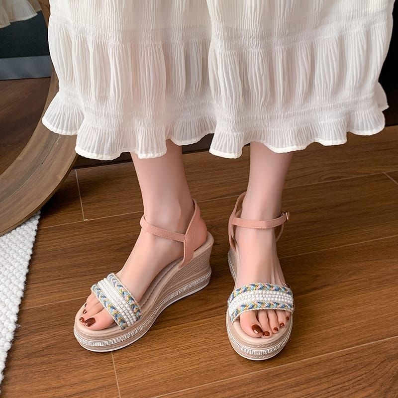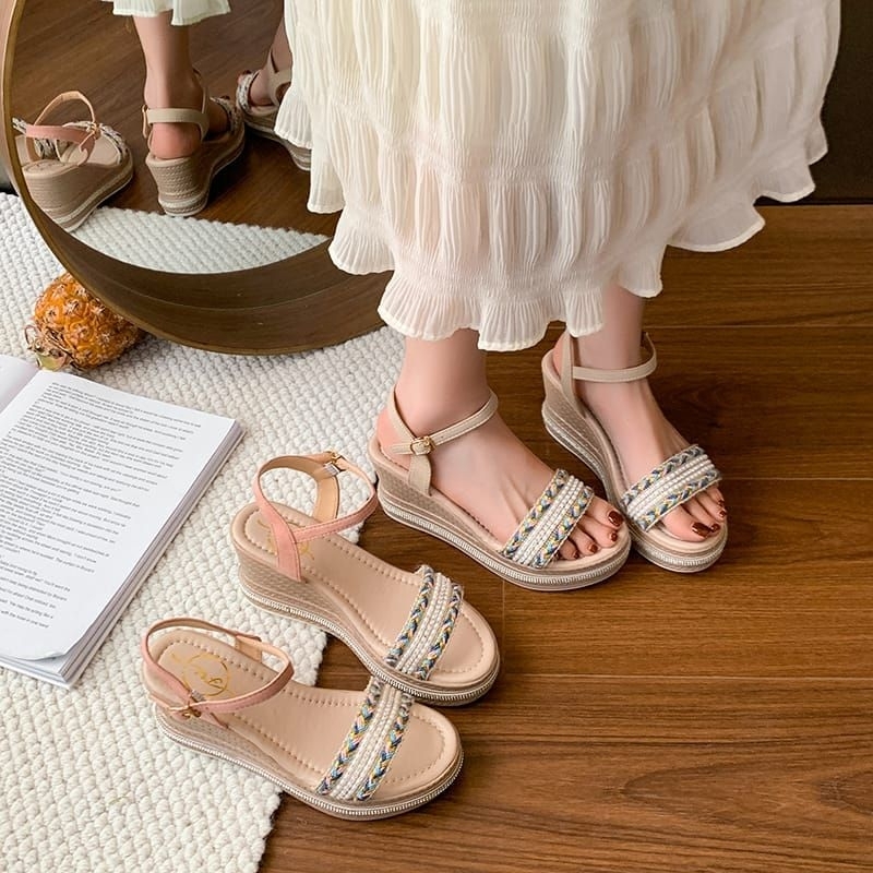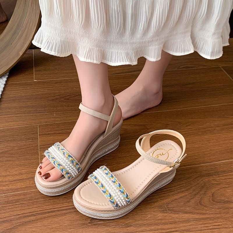 NF8708 - Sepatu Wedges Tali Fashion Wanita Kekinian Sepatu Fashion el batik Wanita Kekinian