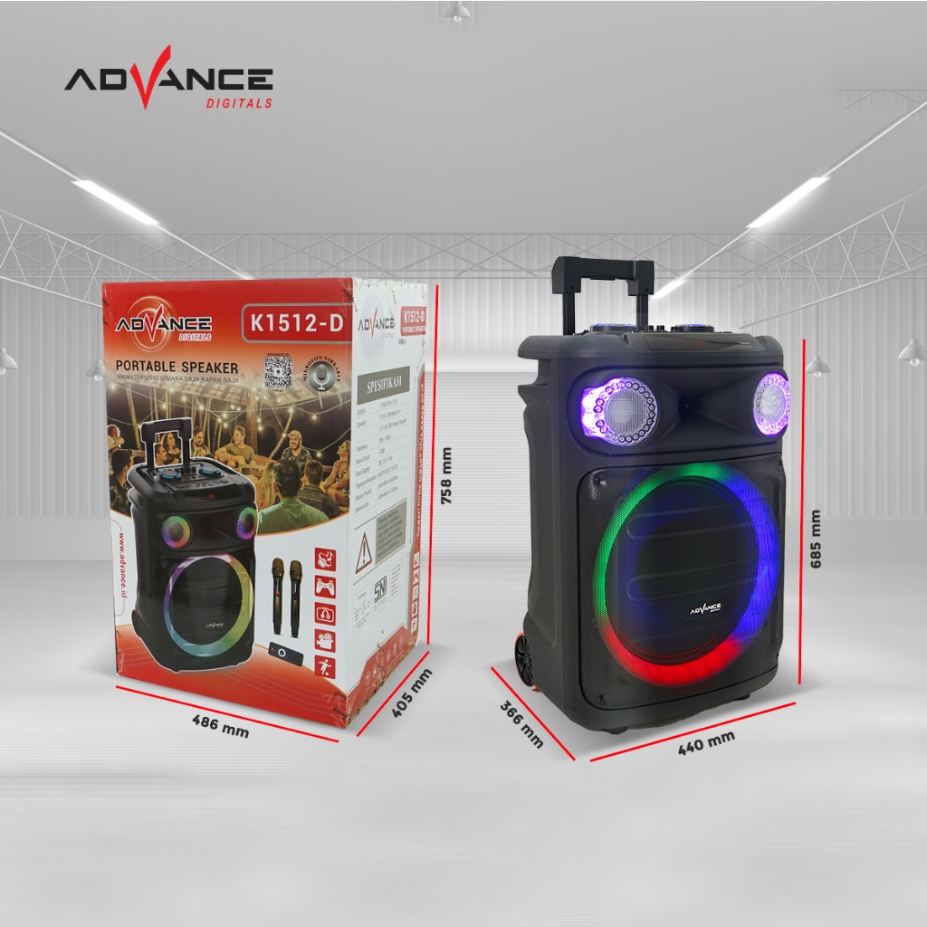 Advance K1512D Speaker Meeting Bluetooth Full Bas 15 inch Free 2 Microphone Wireless Garansi 1 Tahun
