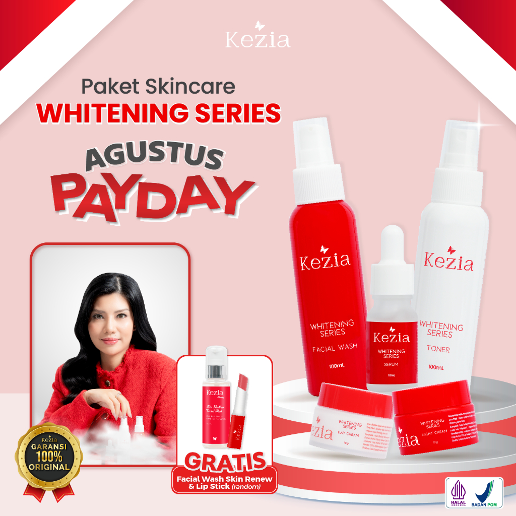 (KEZIA) Beauty - NEW WHITENING PACKAGE SERIES - Paket Glowing Lengkap(FREE 1 FACIAL WASH SKIN RE NEW + 1 LIPSTICK KEZIA)