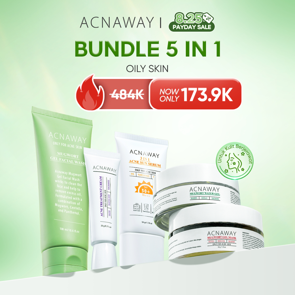 ACNAWAY Bundle 5 in 1 Ultimate Acne Care – Rangkaian Skincare Jerawat Komplit Untuk Semua Jenis Kulit | Dry Skin Kit, Oi