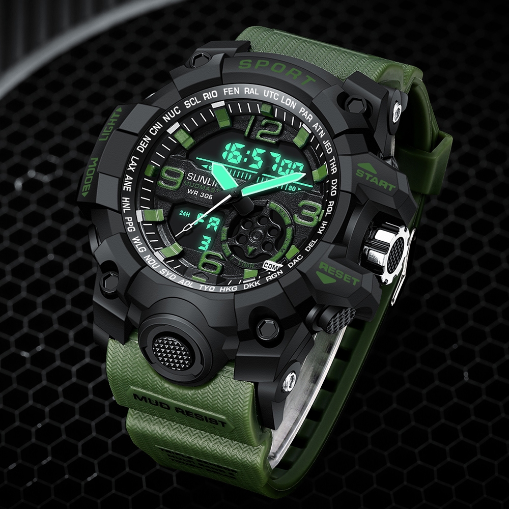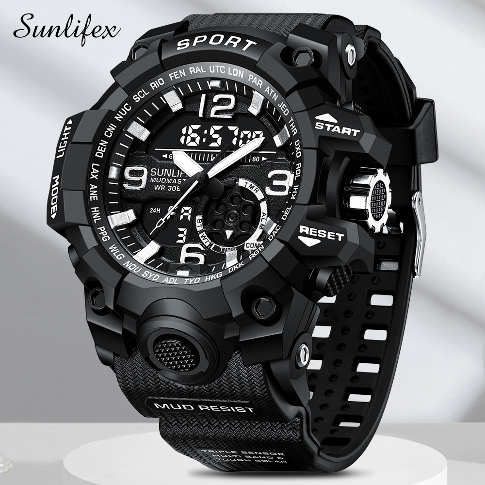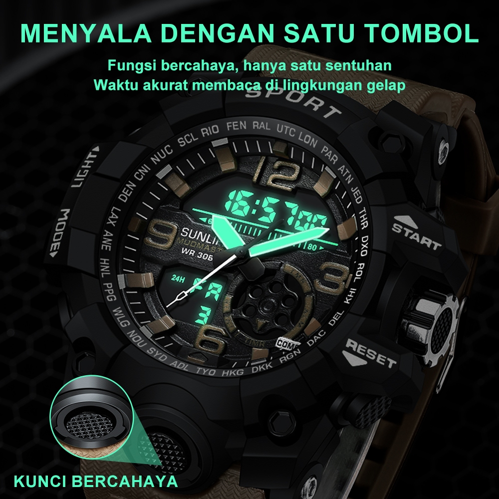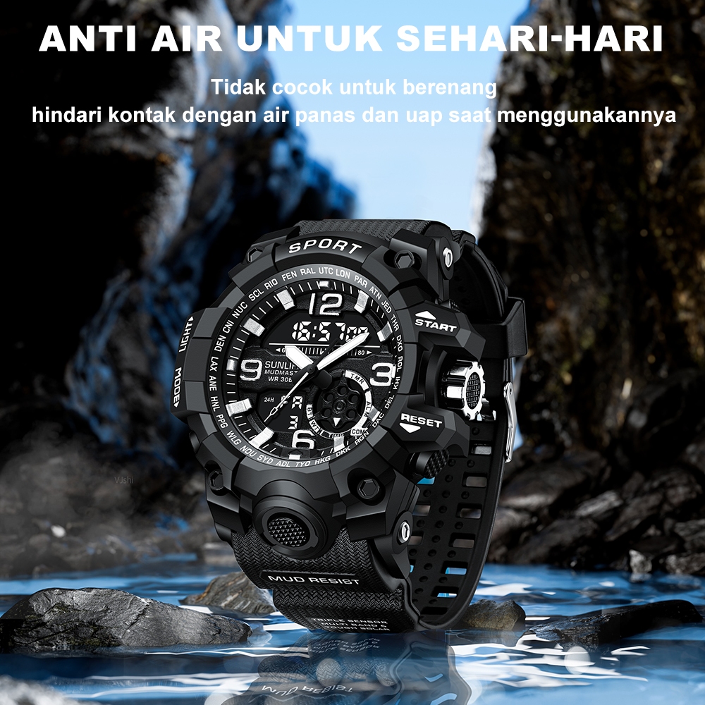 Sunlifex D002 Jam Tangan Pria Digital Anti Air Tali Silikon Multifungsi Watch Keren Olahraga Cowok