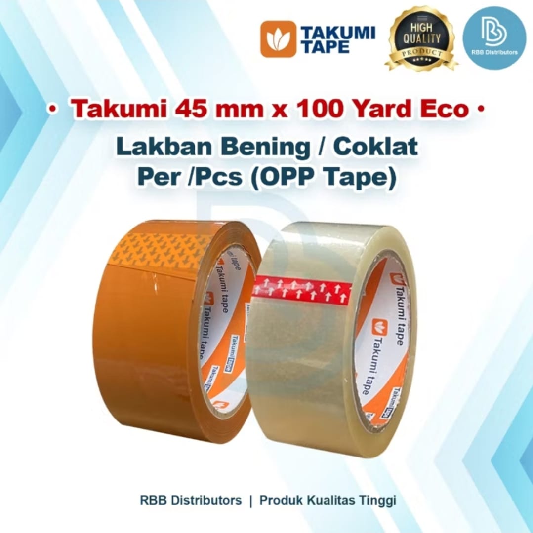 [1 Slop isi 6pcs] Lakban Bening Coklat Takumi Tape 45 mm 100 Yard Tebal Murah