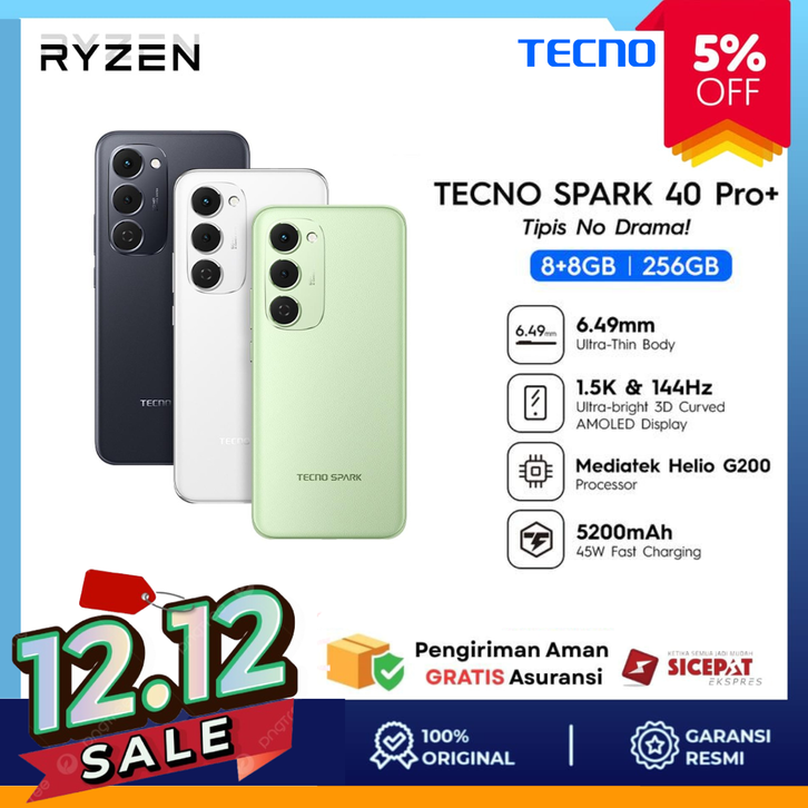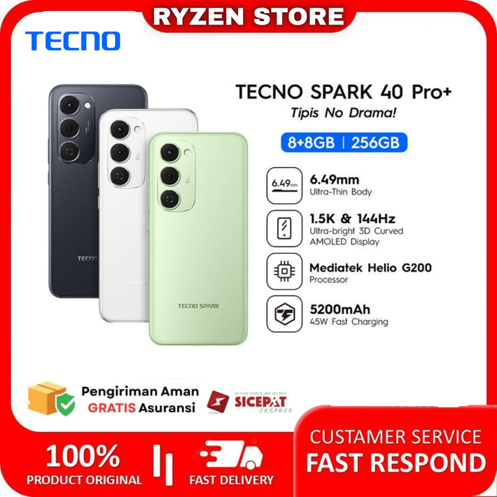 TECNO SPARK 40 PRO+ 8/256GB 144Hz 3D Curved AMOLED 5200mAh 45W Fast Charging IP64 - tecno spark40plus spark 40 plus