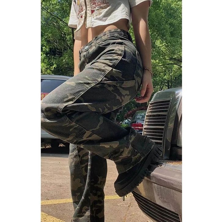 Celana Jeans Wanita Terbaru Kulot Highwaist Army Camouflage Militer Celana Fashion Casual Kekinian