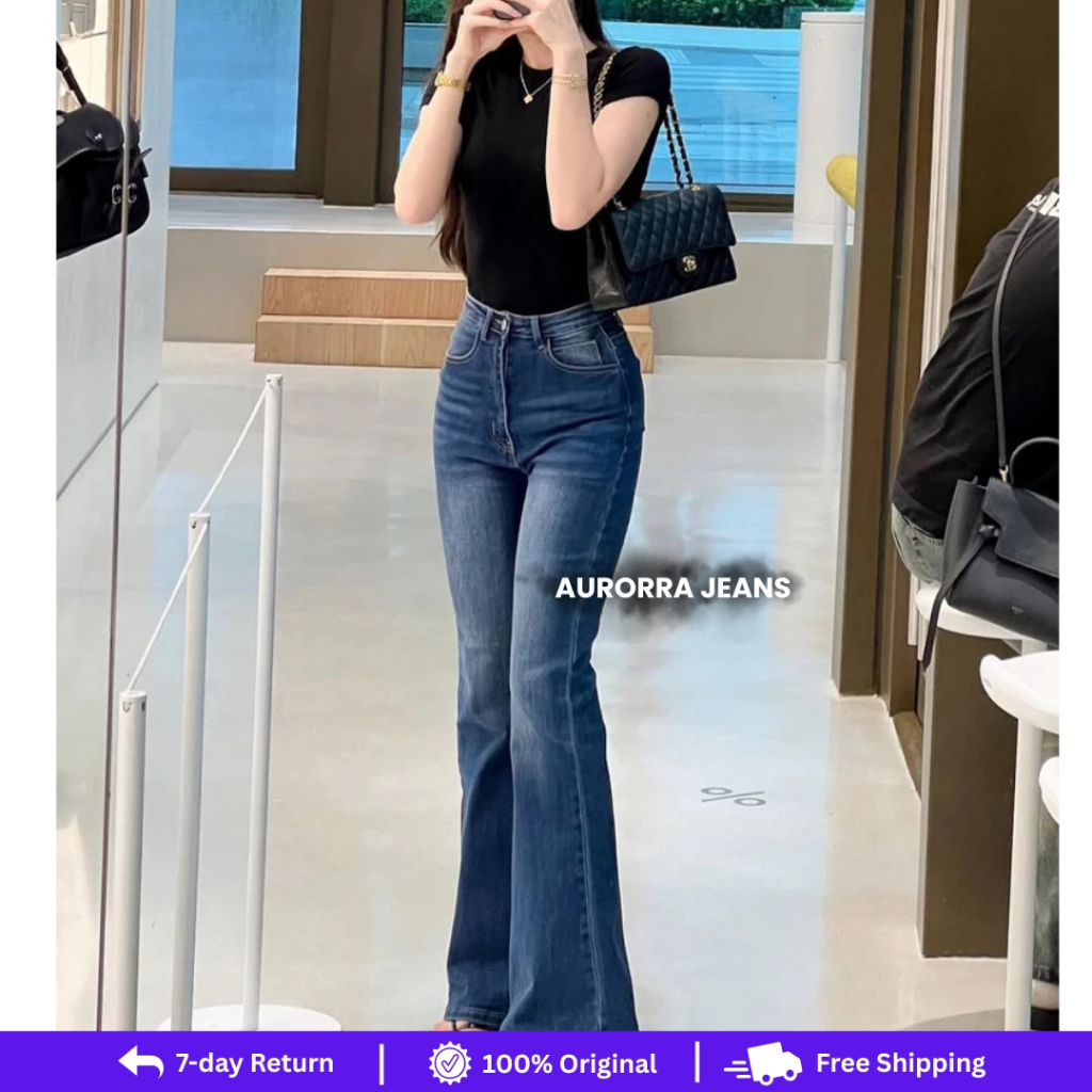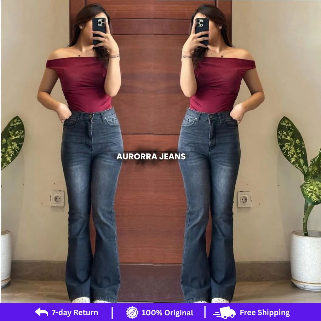 Celana Cutbray Jeans Flared /Jeans Retro Whisker 114 Premium Strechy Melar - - Celana Panjang Wanita Kekinian