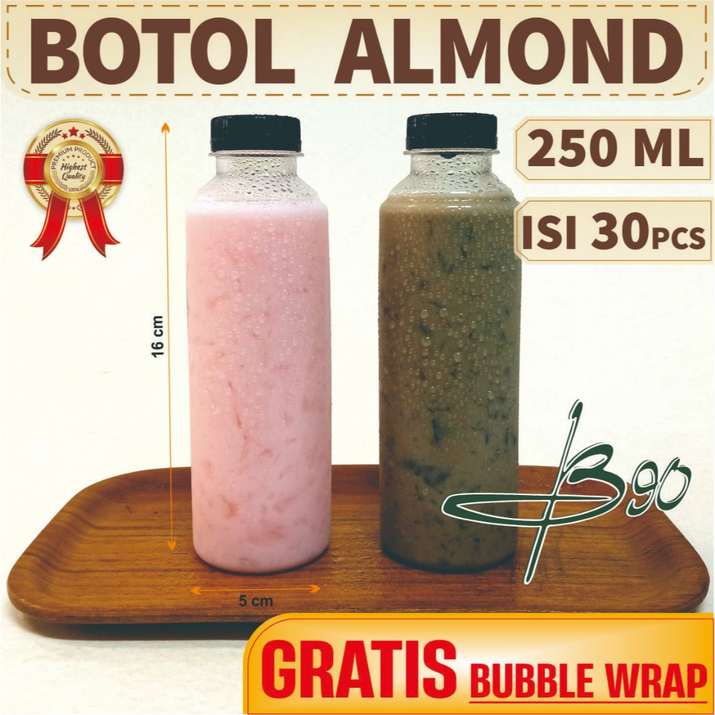 Botol Almond 250 ml isi 30 pcs / Botol plastik minuman termurah Free Packing Bubble Wrap / BOTOL ALMOND 250 + BUBBLE WRA