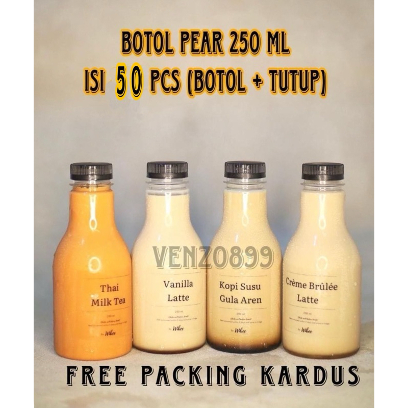 (50 PCS) Botol Plastik Pear / Pir 250ml FREE PACKING KARDUS