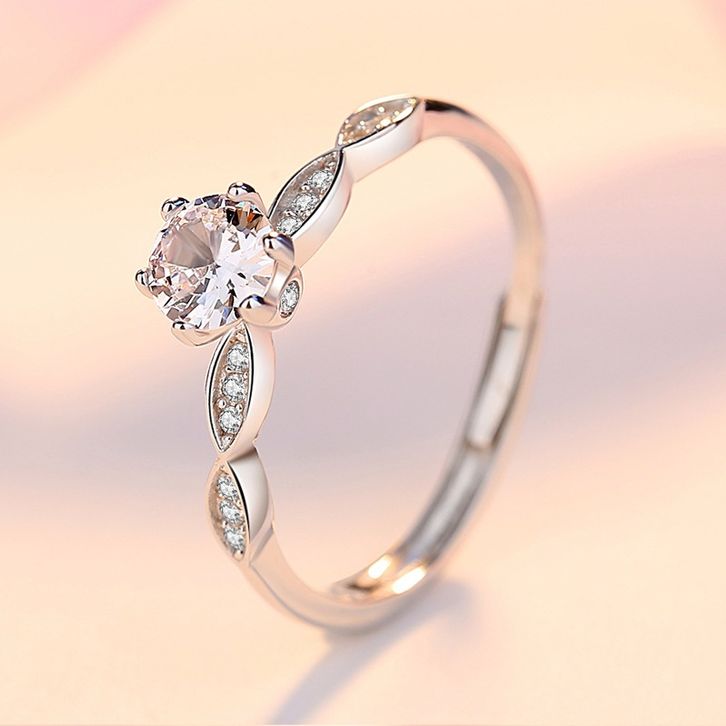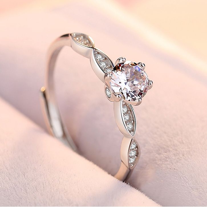 Cin cin Wanita Twisted Ring Solitaire Engagement Adjustable Silver 925 R004