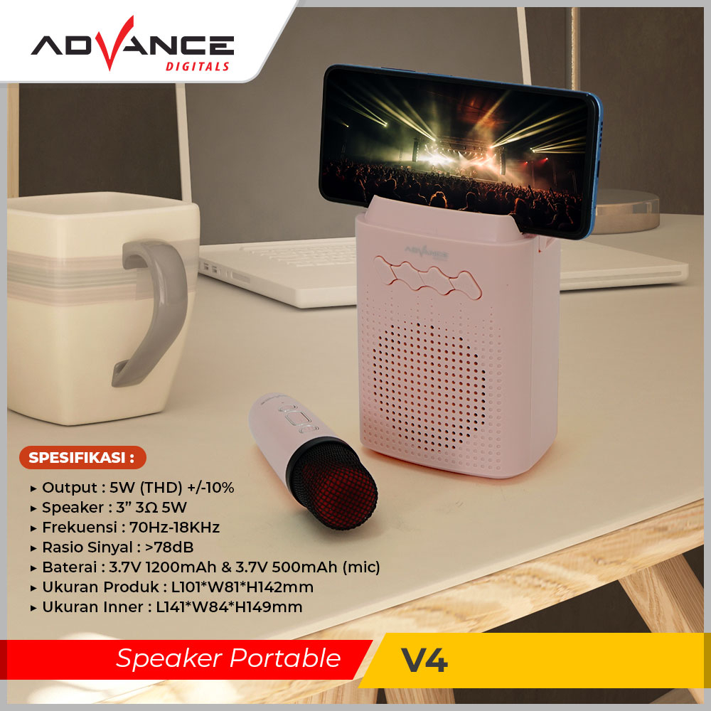 Advance V4 Speaker Bluetooth Mini 3 Inch Portable Karaoke Heavy Bass Gratis 1pc Microphone Garansi 1 Tahun