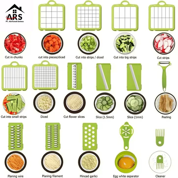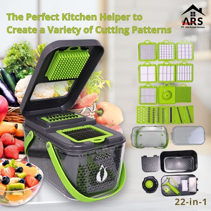 Parutan Multifungsi 22 in 1 & 16 in 1 – Alat Potong Sayur, Kentang, Buah, Tomat