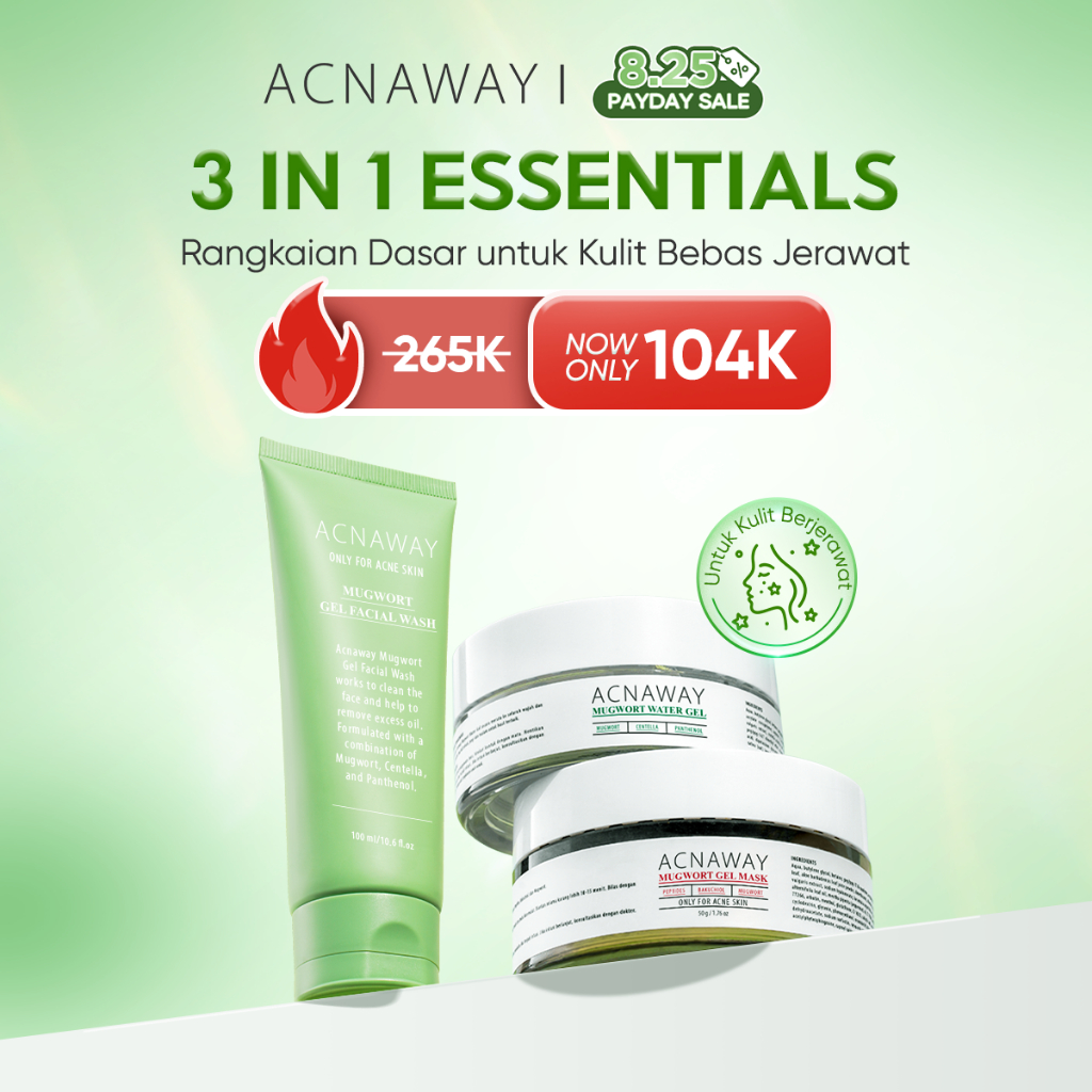 ACNAWAY Bundle 3 in 1 Essential Set - Mugwort Gel Mask + Mugwort Water Gel + Mugwort Gel Face Wash Paket Skincare Daily