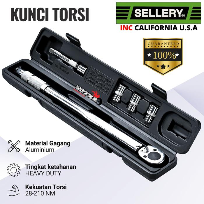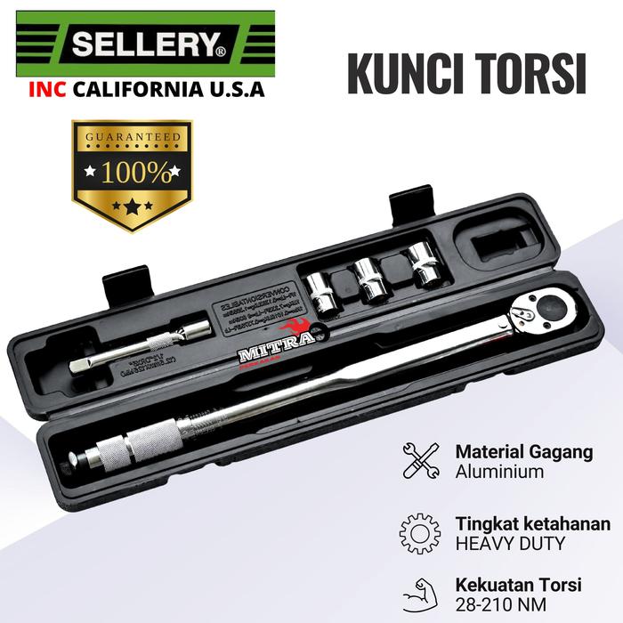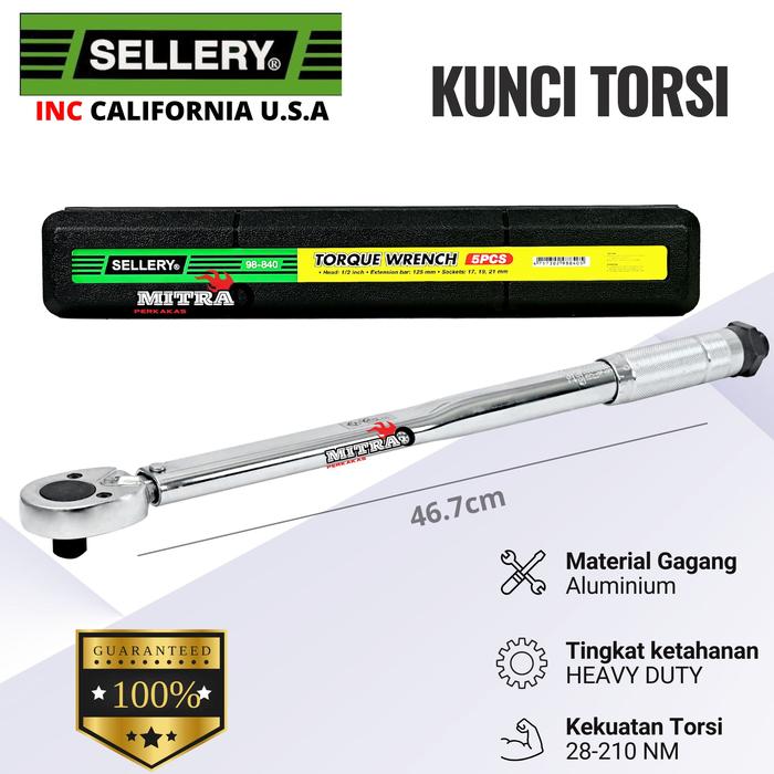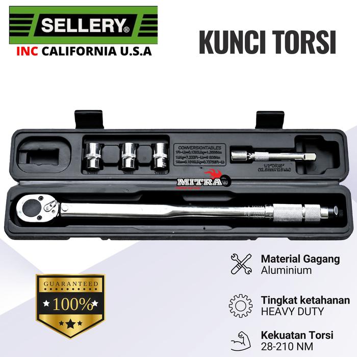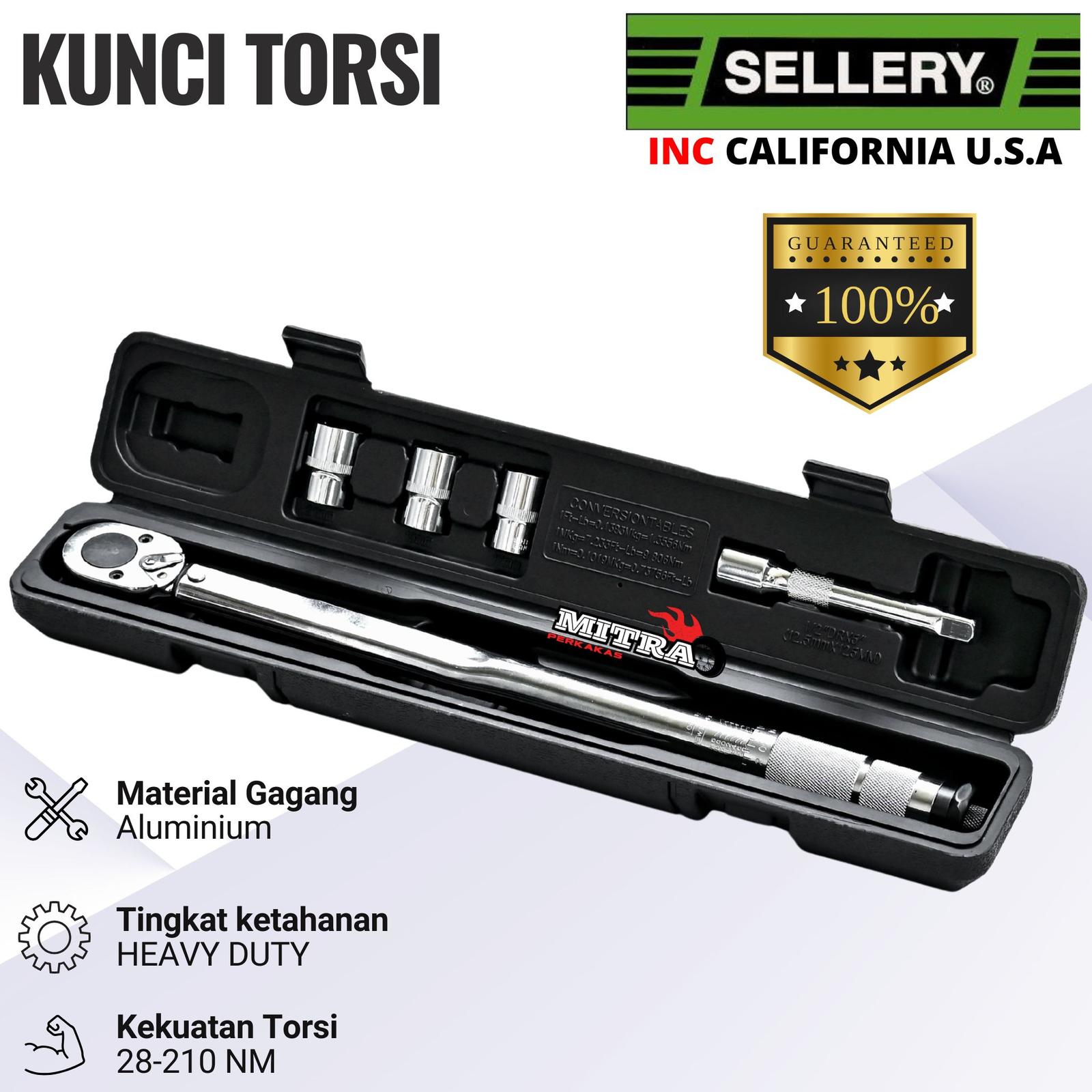 Sellery Kunci Torsi Pengencang Baut 1/2 Inch 28-210 N.m Torque Wrench Set Mata Sock Carbon Steel Chrome Finishing 28-210