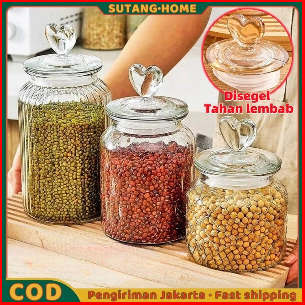 Sutangtoples Kaca Kedap Udara Stoples Tertutup Kaca Toples Lebaran Aesthetic Set Mewah Toples Kue Kaca Toples Penyimpana
