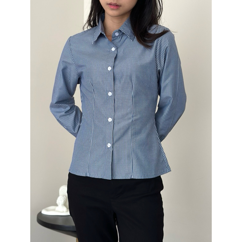 Kemeja Wanita Fitted Stripe Shirt Slim Fit Long Sleeve ASOKA Lanie Fitted Shirt 1319