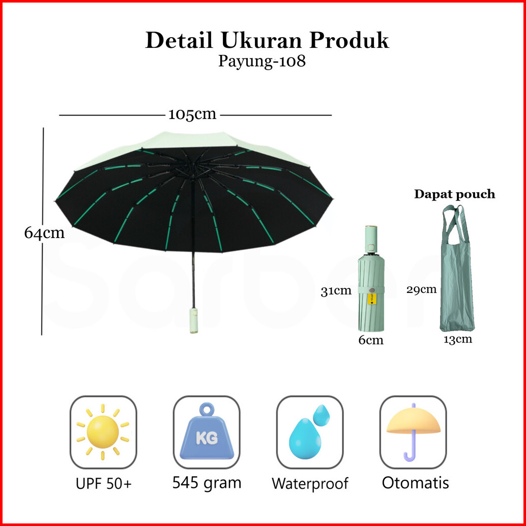 Mixuu - Payung Otomatis Rangka 108 Lapis - Payung Lipat Dengan Anti Uv 50 - Payung Hujan