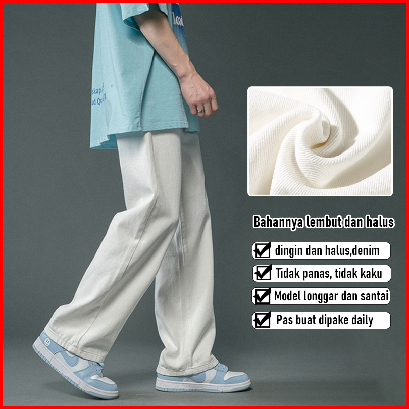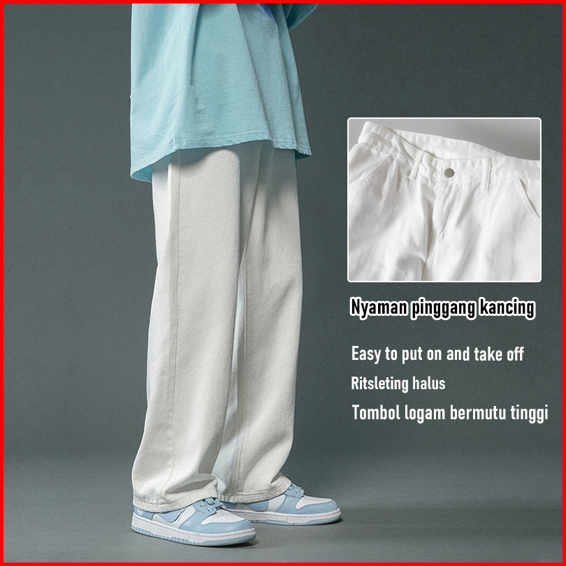 Celana Jeans Pria Korean Style Kulot Jeans Putih Celana Denim Gombrang Loose Pants Baggy Jeans Pria