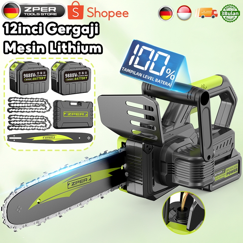 ZPER 12 Inci Gergaji Mesin Gergaji Kayu Super Tajam Listrik Cordless Chainsaw Baterai Lithium
