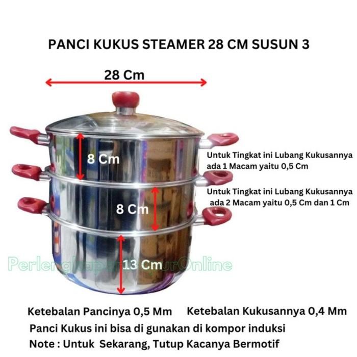Panci Kukusan SUPRA Steamer Stainless Susun 3 28 Cm Tebal