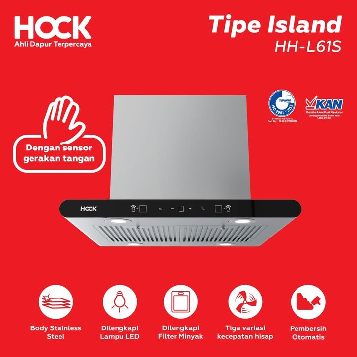 HOCK Cooker Hood Penghisap Asap Tipe Chimney Island HH-L61S 60cm / Free Instalasi
