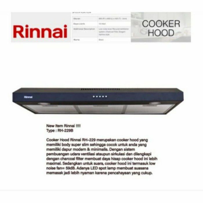Rinnai Cooker Hood RH 229B 229 B Slim Hood 90cm Penghisap Asap
