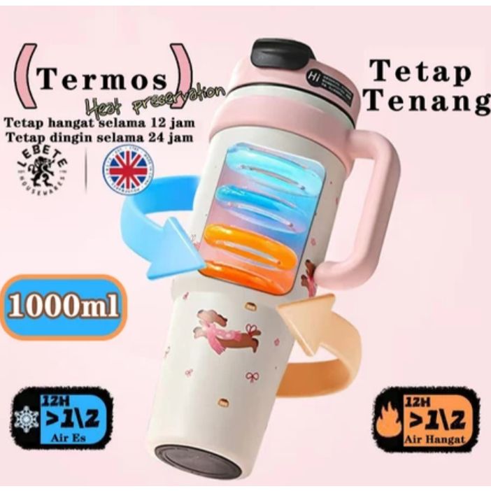 Gelas Tumbler Stainless Vacuum Portable Thermos Botol Minum Besar 1000mili