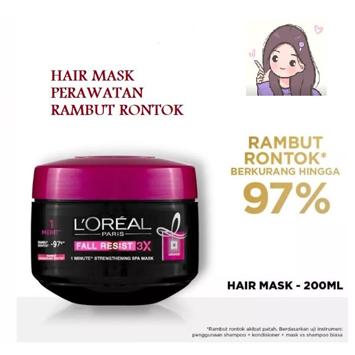 masker rambut rontok dan penumbuh rambut Hair Mask L'Oreal Paris Fall Resist 3x Hair Care - 200ml Loreal Perawatan Ramb