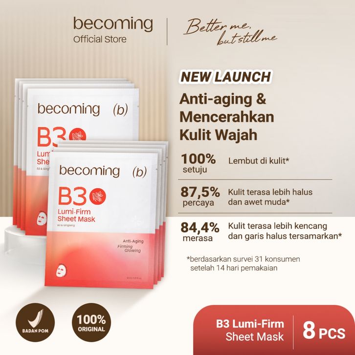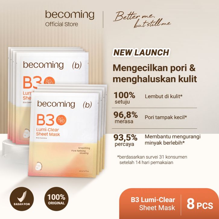sheetmask 【1 BOX LEBIH MURAH 90 RIBU】 becoming B3 Sheet Mask 30ml 2 Niacinamide Alpha Arbutin | Bundle Isi 8pcs | Essce