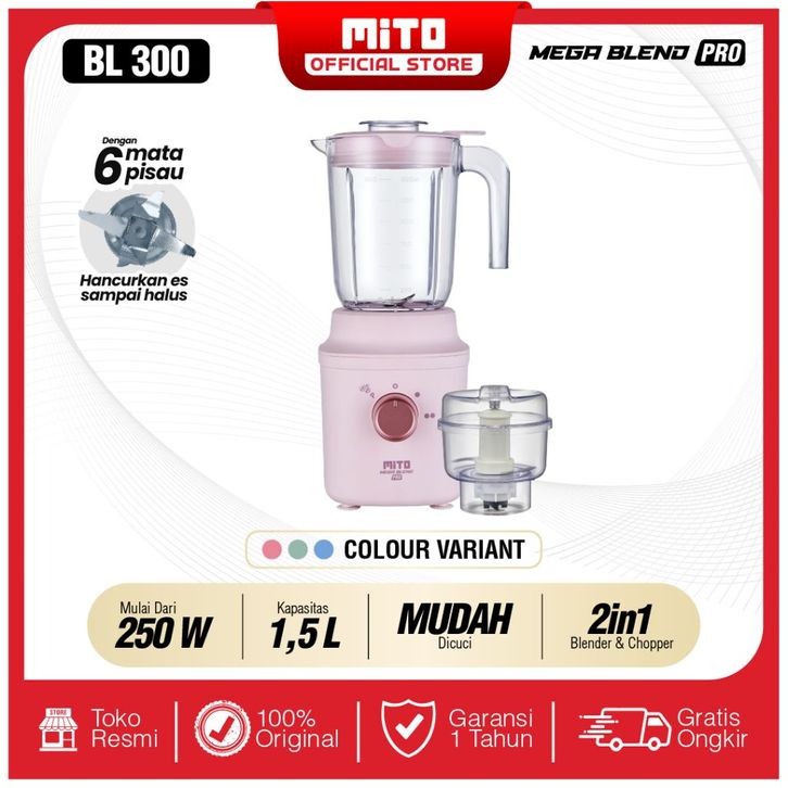 MITO MEGA BLEND PRO BL300 - 1,5L Jar 2 Tingkat Kecepatan + Pulse + 6 Mata pis4 dengan Ice Crusher