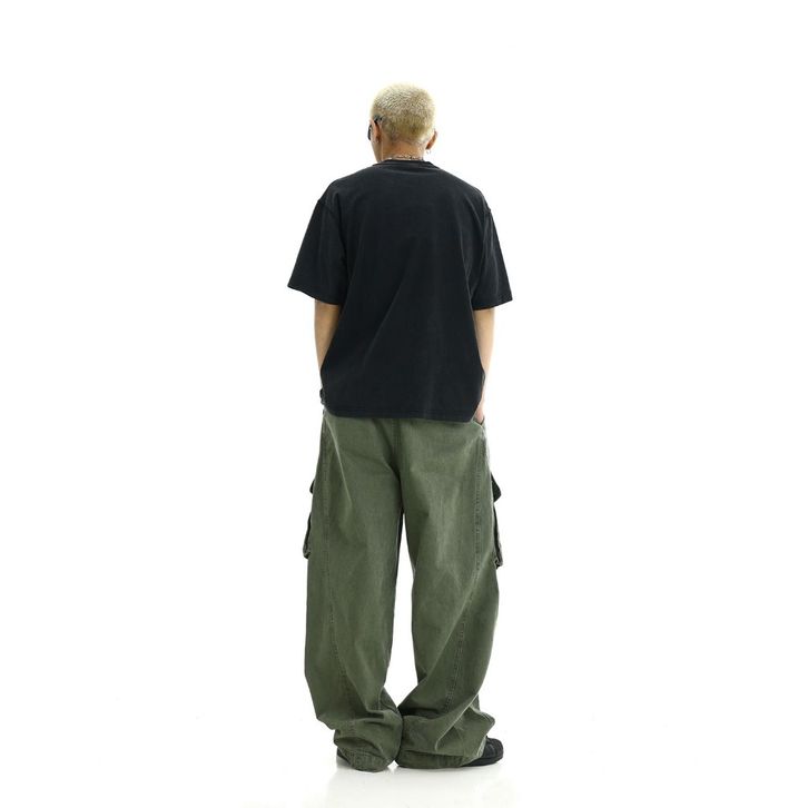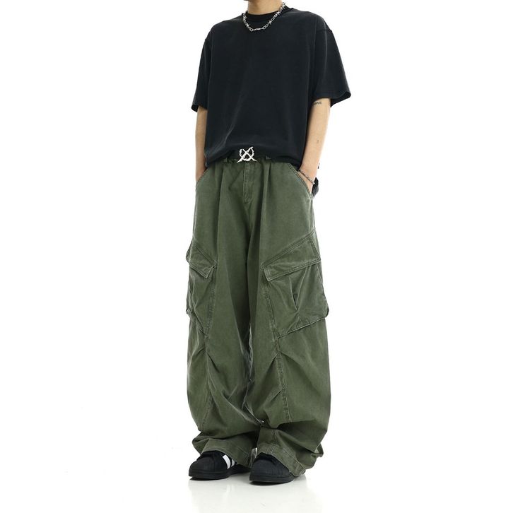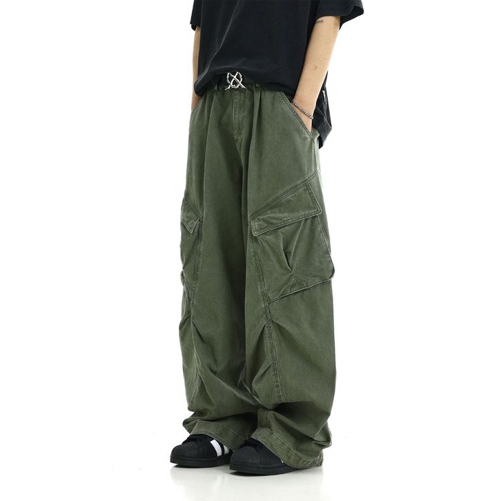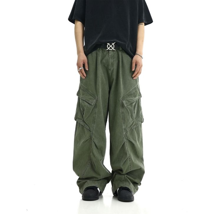 ORIGINAL Celana Jeans Cargo Panjang Unisex Korean Street Style Washed Vintage Detail Struktural Loose Fit Bahan